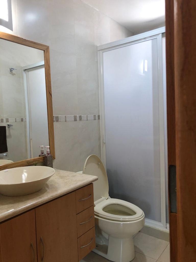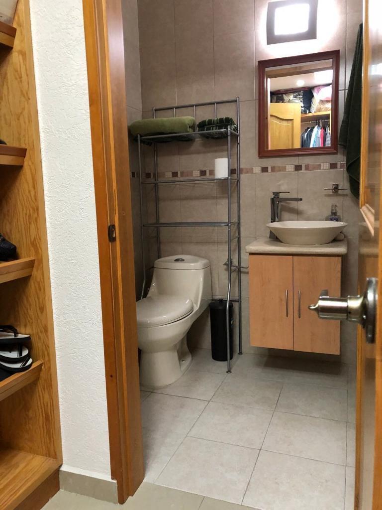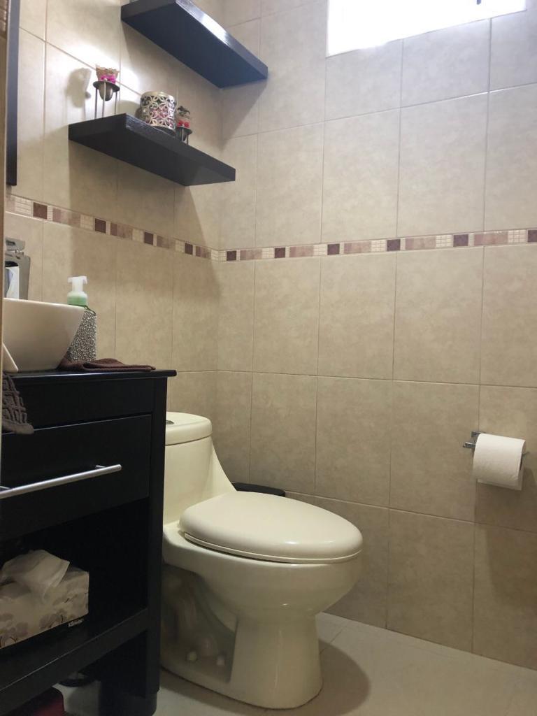 Sala iluminada y medio baño