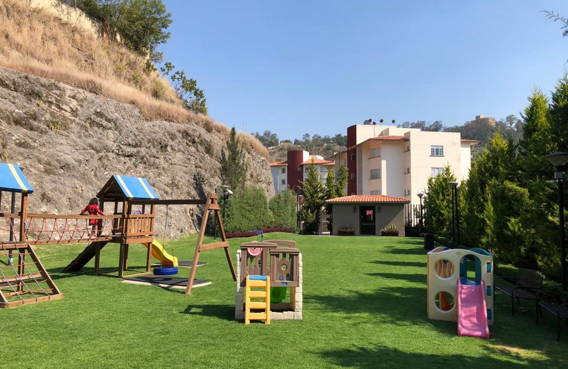 Jardín con Juegos infantiles y asador